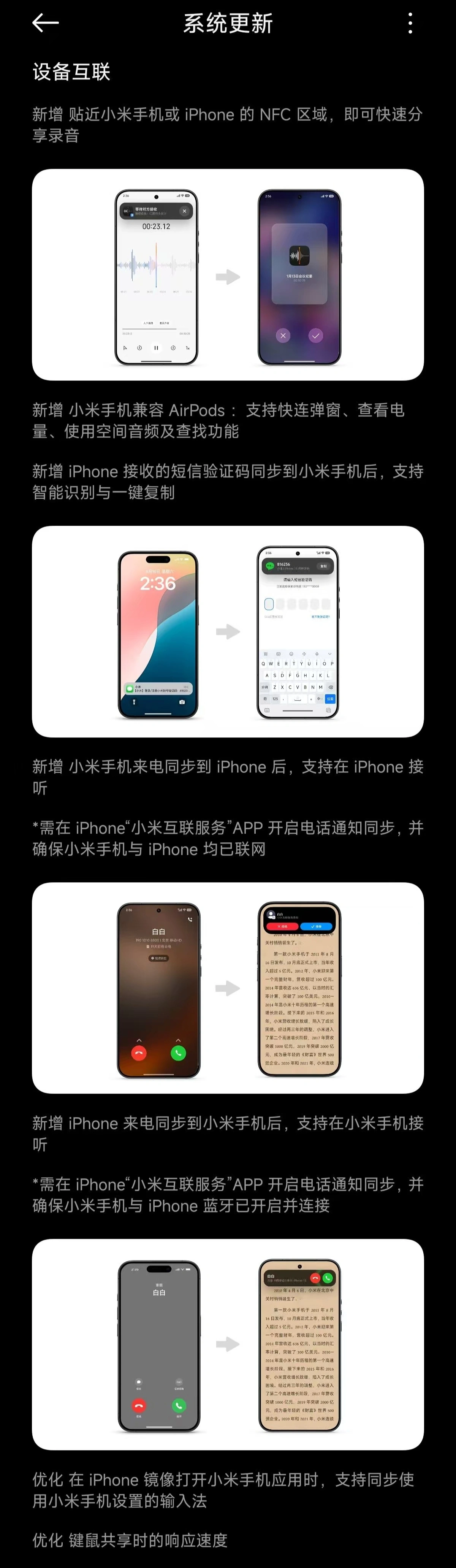 除此除外,小米还大幅加强了与苹果家具的互联互通,举例: